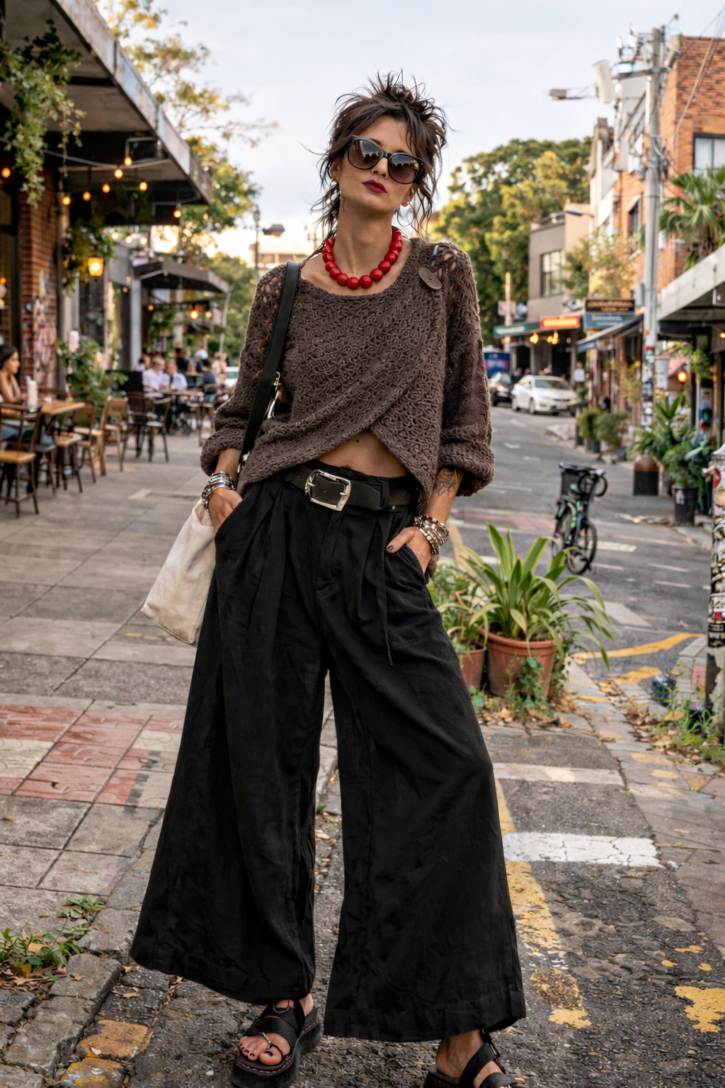 Worn open, it falls in a relaxed, flowing silhouette. Fasten it, cross the fronts, or button it for a completely different look. Each styling option offering a subtle nod to softly structured, Oriental-inspired design. A versatile statement piece that blends modern crochet with timeless elegance.